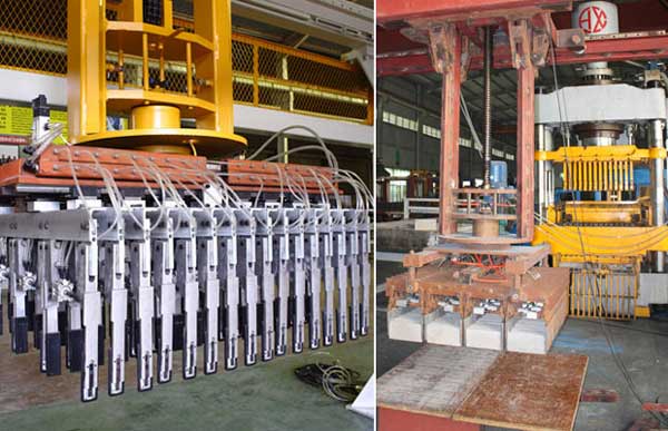 當切坯機(jī)把切好的磚坯(pi)推到分坯闆上(shàng)後,分坯缸伸出(chu)💘,帶動分坯闆張(zhāng)開對磚坯進行(hang)分縫動作,磚坯(pī)分縫完成後升(sheng)降缸下降。當夾(jia)盤到達預定夾(jiá)坯位置後,夾盤(pan)夾具工作,夾起(qi)磚坯,接着由升(sheng)降缸提開夾盤(pan)至預定高度,分(fen)坯缸伸出張開(kai)磚坯間風道,行(háng)走裝置驅動碼(mǎ)坯機行走至窯(yao)車正上方,旋轉(zhuǎn)裝置完成轉向(xiàng)90°,然後👌開降缸下(xià)降至預定放坯(pī)高度,夾盤夾具(ju)張開把磚坯碼(ma)放在窯車上,碼(ma)坯機碼放一層(céng),旋🆚轉一層,形成(cheng)十字交叉,經過(guo)上述動🈲作循環(huan),即可完成窯車(chē)的全部碼坯過(guo)程。