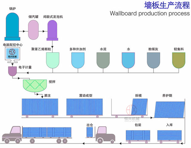 恒興立(li)式輕質牆(qiáng)闆生産線(xian)布局圖